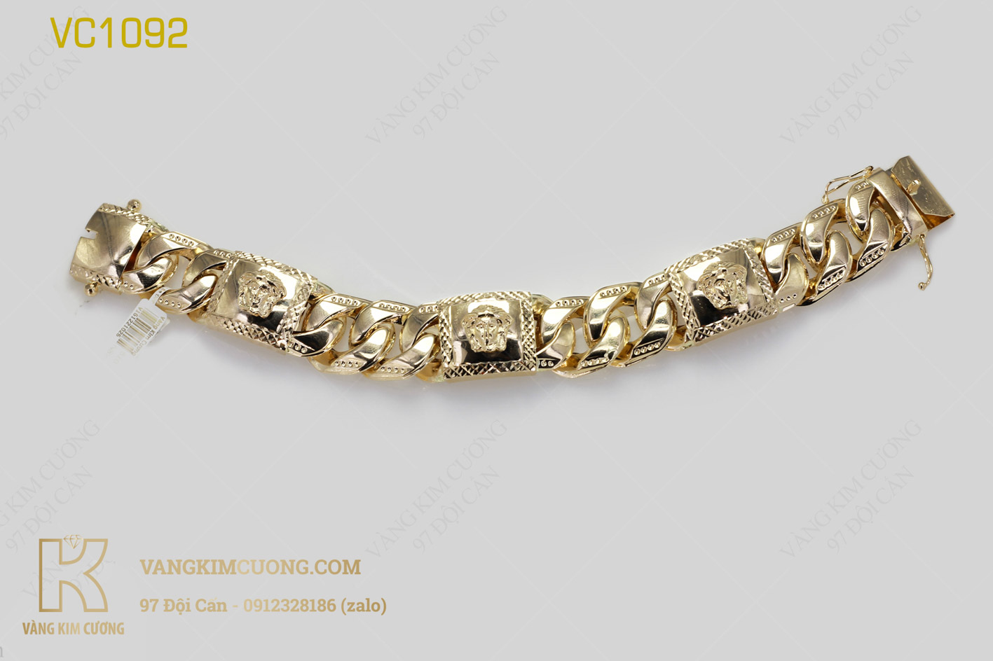 Lắc tay nam vàng cao cấp 16k công nghệ 3D mã VC1092 được sản xuất từ vàng cao cấp tiêu chuẩn quốc tế 16k ( tên thường gọi chung là vàng 18k ), đây là oại vàng trang sức cao cấp có hàng lượng vàng nguyên chất 9999 cao chiếm tới 61% kết hợp các kim loại quý khác với tỉ lệ cân đối hài hòa nhất hiện nay tạo ra loại vàng cao cấp có độ cứng, độ sáng bóng tốt nhất không bị ảnh hưởng của môi trường ngoài tác động nên sản phẩm trang sức vàng 16k thường không xi mà vẫn luôn bóng sáng ánh vàng kim đây là loại vàng hoàn hảo trong thiết kế trang sức
