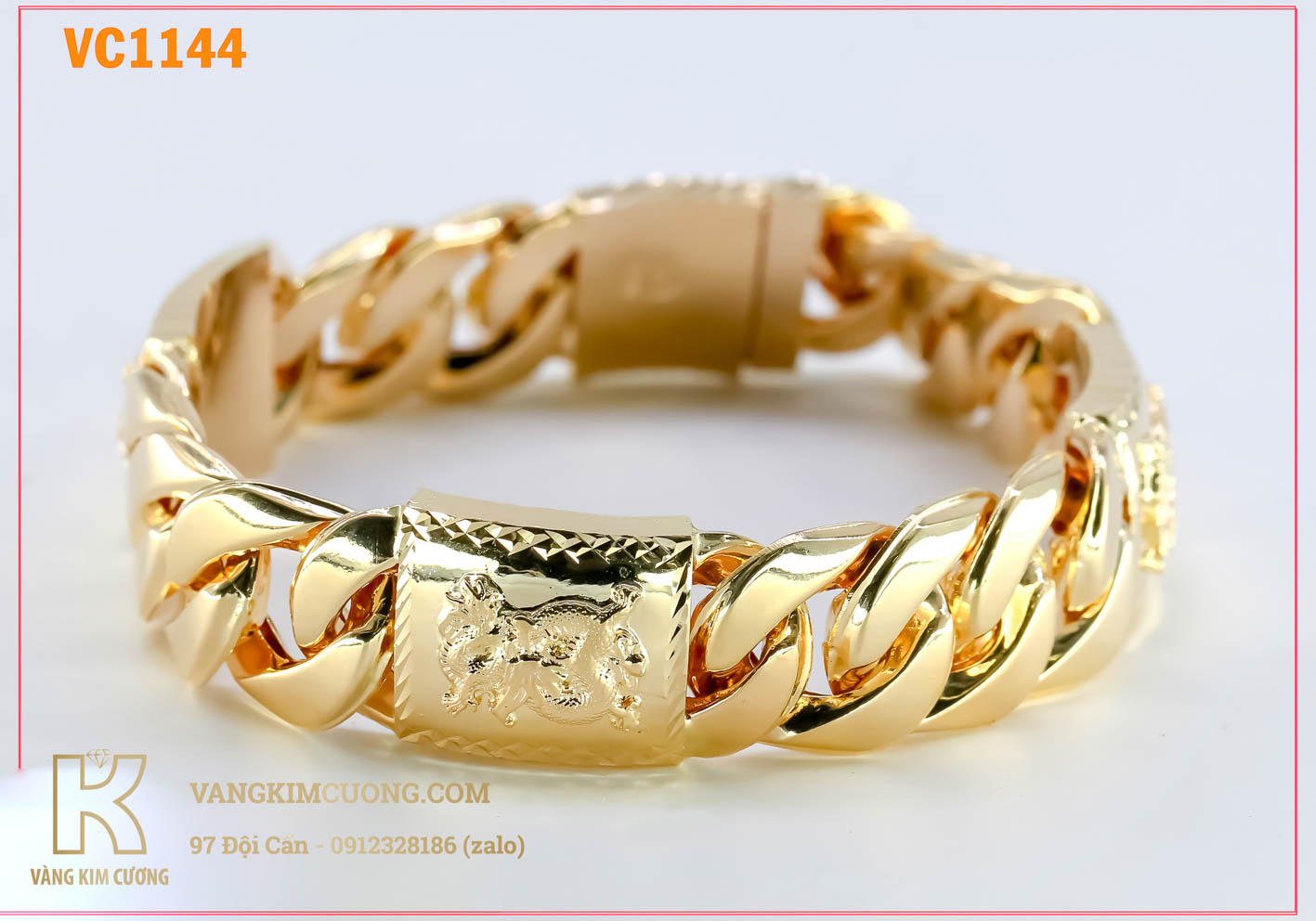 Lắc tay nam vàng cao cấp 16k công nghệ 3D mã VC1144 được sản xuất từ vàng cao cấp tiêu chuẩn quốc tế 16k ( tên thường gọi chung là vàng 18k ), đây là oại vàng trang sức cao cấp có hàng lượng vàng nguyên chất 9999 cao chiếm tới 61% kết hợp các kim loại quý khác với tỉ lệ cân đối hài hòa nhất hiện nay tạo ra loại vàng cao cấp có độ cứng, độ sáng bóng tốt nhất không bị ảnh hưởng của môi trường ngoài tác động nên sản phẩm trang sức vàng 16k thường không xi mà vẫn luôn bóng sáng ánh vàng kim đây là loại vàng hoàn hảo trong thiết kế trang sức