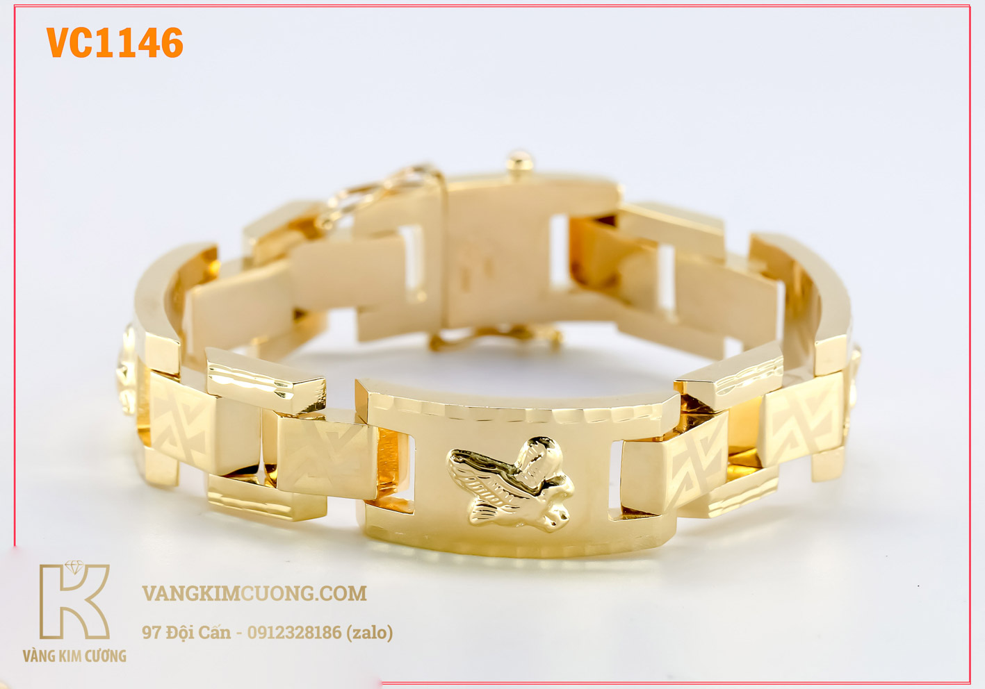 Lắc tay nam vàng cao cấp 16k công nghệ 3D mã VC1146 được sản xuất từ vàng cao cấp tiêu chuẩn quốc tế 16k ( tên thường gọi chung là vàng 18k ), đây là oại vàng trang sức cao cấp có hàng lượng vàng nguyên chất 9999 cao chiếm tới 61% kết hợp các kim loại quý khác với tỉ lệ cân đối hài hòa nhất hiện nay tạo ra loại vàng cao cấp có độ cứng, độ sáng bóng tốt nhất không bị ảnh hưởng của môi trường ngoài tác động nên sản phẩm trang sức vàng 16k thường không xi mà vẫn luôn bóng sáng ánh vàng kim đây là loại vàng hoàn hảo trong thiết kế trang sức
