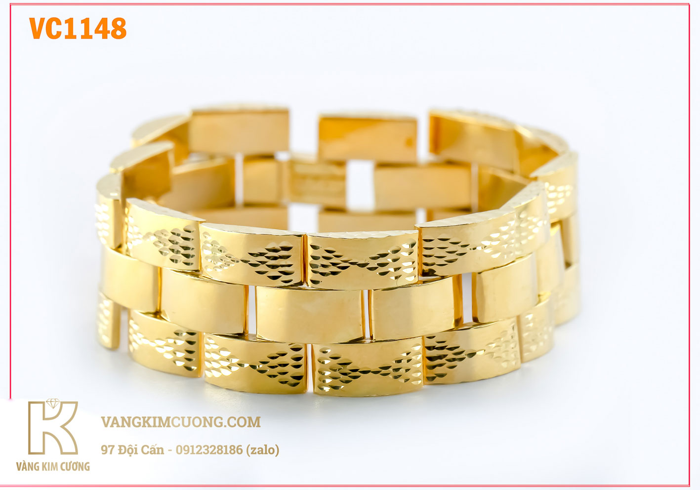 Lắc tay nam vàng cao cấp 16k công nghệ 3D mã VC1148 được sản xuất từ vàng cao cấp tiêu chuẩn quốc tế 16k ( tên thường gọi chung là vàng 18k ), đây là oại vàng trang sức cao cấp có hàng lượng vàng nguyên chất 9999 cao chiếm tới 61% kết hợp các kim loại quý khác với tỉ lệ cân đối hài hòa nhất hiện nay tạo ra loại vàng cao cấp có độ cứng, độ sáng bóng tốt nhất không bị ảnh hưởng của môi trường ngoài tác động nên sản phẩm trang sức vàng 16k thường không xi mà vẫn luôn bóng sáng ánh vàng kim đây là loại vàng hoàn hảo trong thiết kế trang sức