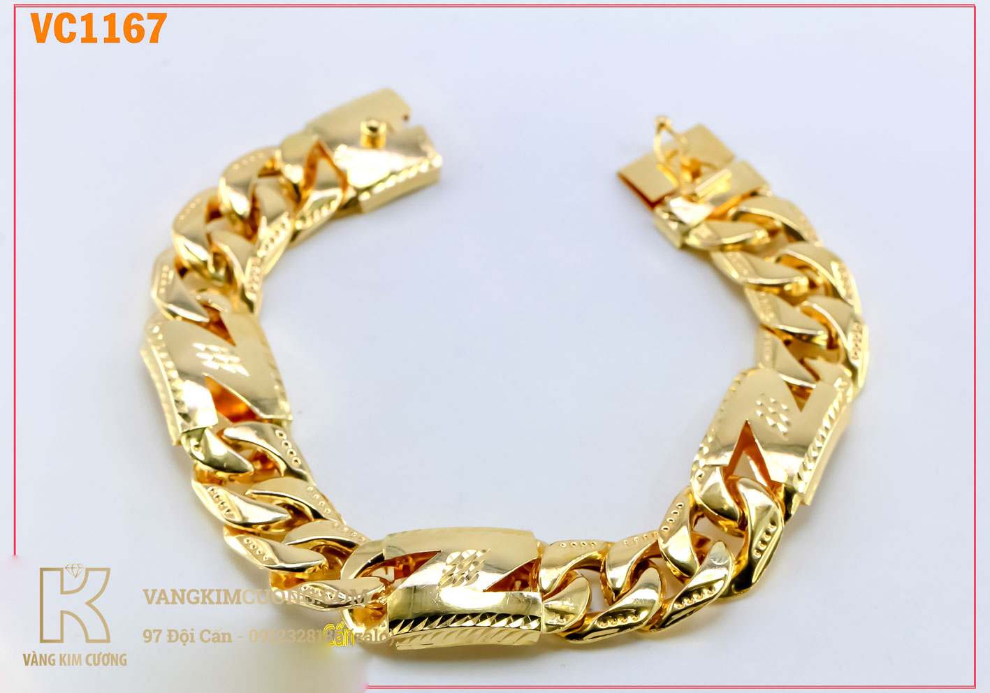 Lắc tay nam vàng cao cấp 16k công nghệ 3D mã VC1167 được sản xuất từ vàng cao cấp tiêu chuẩn quốc tế 16k ( tên thường gọi chung là vàng 18k ), đây là oại vàng trang sức cao cấp có hàng lượng vàng nguyên chất 9999 cao chiếm tới 61% kết hợp các kim loại quý khác với tỉ lệ cân đối hài hòa nhất hiện nay tạo ra loại vàng cao cấp có độ cứng, độ sáng bóng tốt nhất không bị ảnh hưởng của môi trường ngoài tác động nên sản phẩm trang sức vàng 16k thường không xi mà vẫn luôn bóng sáng ánh vàng kim đây là loại vàng hoàn hảo trong thiết kế trang sức