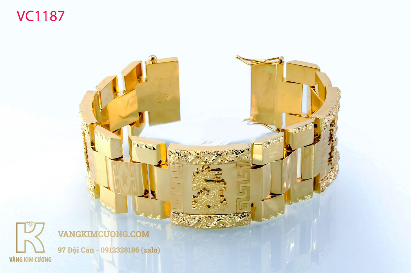 Lắc tay nam vàng cao cấp 16k công nghệ 3D mã VC1187 được sản xuất từ vàng cao cấp tiêu chuẩn quốc tế 16k ( tên thường gọi chung là vàng 18k ), đây là oại vàng trang sức cao cấp có hàng lượng vàng nguyên chất 9999 cao chiếm tới 61% kết hợp các kim loại quý khác với tỉ lệ cân đối hài hòa nhất hiện nay tạo ra loại vàng cao cấp có độ cứng, độ sáng bóng tốt nhất không bị ảnh hưởng của môi trường ngoài tác động nên sản phẩm trang sức vàng 16k thường không xi mà vẫn luôn bóng sáng ánh vàng kim đây là loại vàng hoàn hảo trong thiết kế trang sức
