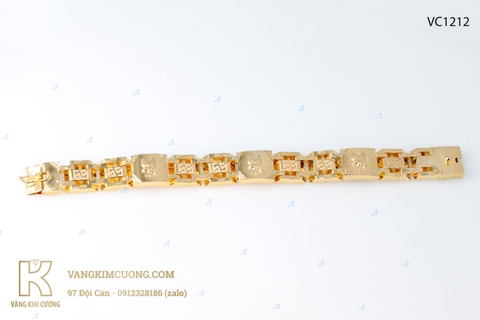 Lắc tay nam vàng cao cấp 16k công nghệ 3D mã VC1212 được sản xuất từ vàng cao cấp tiêu chuẩn quốc tế 16k ( tên thường gọi chung là vàng 18k ), đây là oại vàng trang sức cao cấp có hàng lượng vàng nguyên chất 9999 cao chiếm tới 61% kết hợp các kim loại quý khác với tỉ lệ cân đối hài hòa nhất hiện nay tạo ra loại vàng cao cấp có độ cứng, độ sáng bóng tốt nhất không bị ảnh hưởng của môi trường ngoài tác động nên sản phẩm trang sức vàng 16k thường không xi mà vẫn luôn bóng sáng ánh vàng kim đây là loại vàng hoàn hảo trong thiết kế trang sức