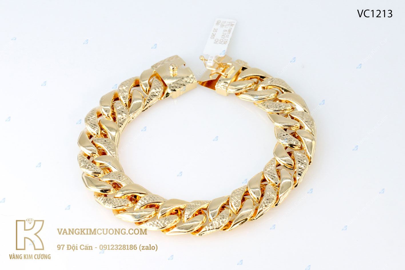 Lắc tay nam vàng cao cấp 16k công nghệ 3D mã VC1213 được sản xuất từ vàng cao cấp tiêu chuẩn quốc tế 16k ( tên thường gọi chung là vàng 18k ), đây là oại vàng trang sức cao cấp có hàng lượng vàng nguyên chất 9999 cao chiếm tới 61% kết hợp các kim loại quý khác với tỉ lệ cân đối hài hòa nhất hiện nay tạo ra loại vàng cao cấp có độ cứng, độ sáng bóng tốt nhất không bị ảnh hưởng của môi trường ngoài tác động nên sản phẩm trang sức vàng 16k thường không xi mà vẫn luôn bóng sáng ánh vàng kim đây là loại vàng hoàn hảo trong thiết kế trang sức