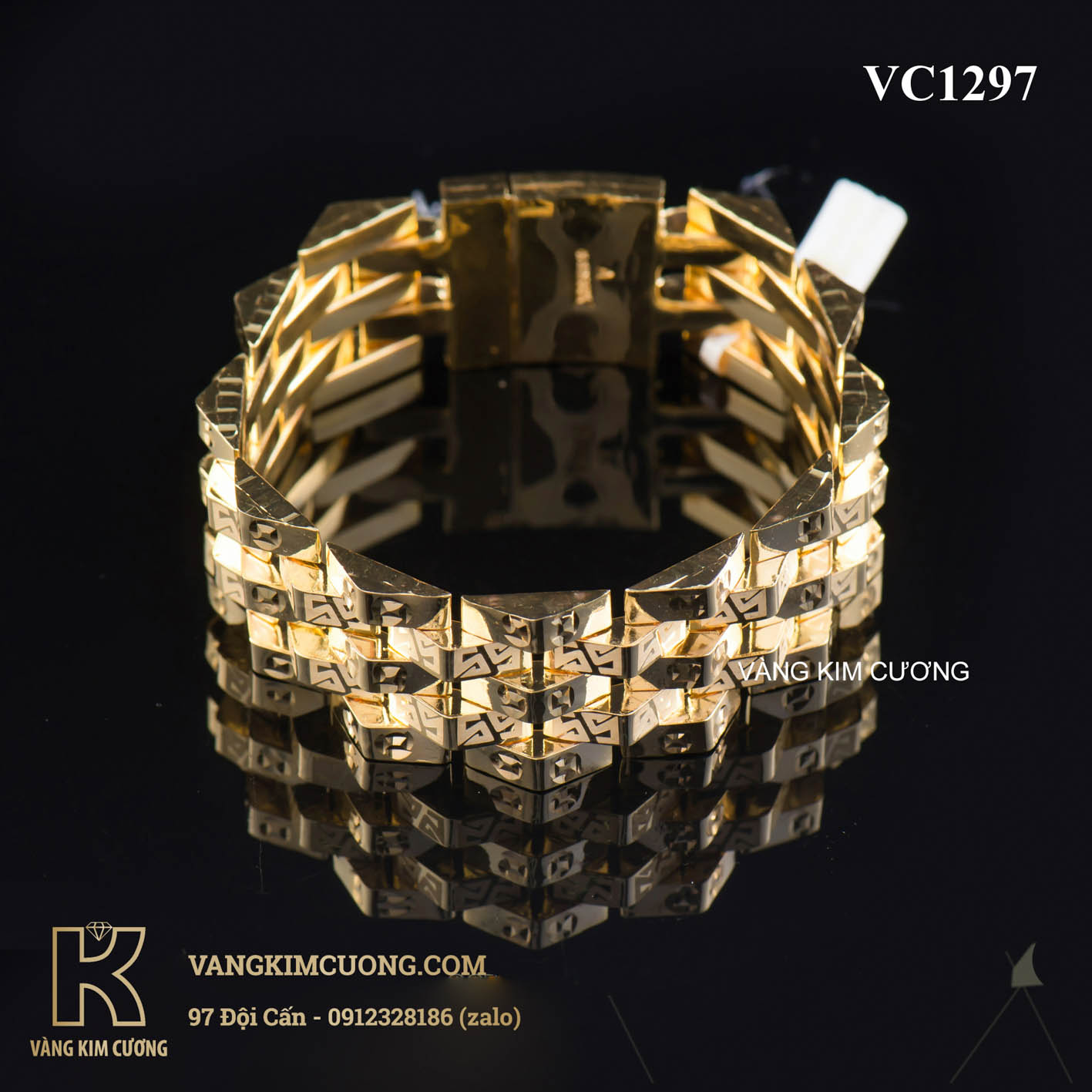 Lắc tay nam vàng cao cấp 16k công nghệ 3D mã VC1297 được sản xuất từ vàng cao cấp tiêu chuẩn quốc tế 16k ( tên thường gọi chung là vàng 18k ), đây là oại vàng trang sức cao cấp có hàng lượng vàng nguyên chất 9999 cao chiếm tới 61% kết hợp các kim loại quý khác với tỉ lệ cân đối hài hòa nhất hiện nay tạo ra loại vàng cao cấp có độ cứng, độ sáng bóng tốt nhất không bị ảnh hưởng của môi trường ngoài tác động nên sản phẩm trang sức vàng 16k thường không xi mà vẫn luôn bóng sáng ánh vàng kim đây là loại vàng hoàn hảo trong thiết kế trang sức