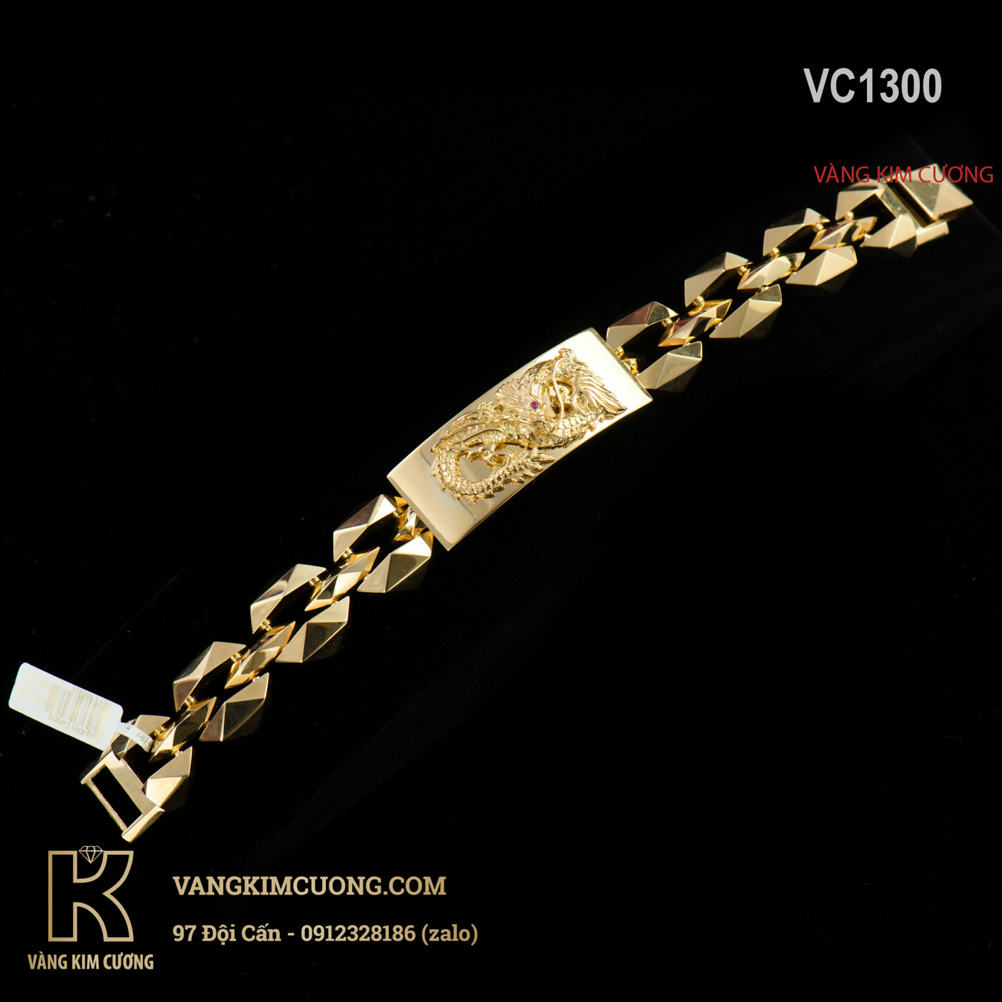 Lắc tay nam vàng cao cấp 16k công nghệ 3D mã VC1300 được sản xuất từ vàng cao cấp tiêu chuẩn quốc tế 16k ( tên thường gọi chung là vàng 18k ), đây là oại vàng trang sức cao cấp có hàng lượng vàng nguyên chất 9999 cao chiếm tới 61% kết hợp các kim loại quý khác với tỉ lệ cân đối hài hòa nhất hiện nay tạo ra loại vàng cao cấp có độ cứng, độ sáng bóng tốt nhất không bị ảnh hưởng của môi trường ngoài tác động nên sản phẩm trang sức vàng 16k thường không xi mà vẫn luôn bóng sáng ánh vàng kim đây là loại vàng hoàn hảo trong thiết kế trang sức