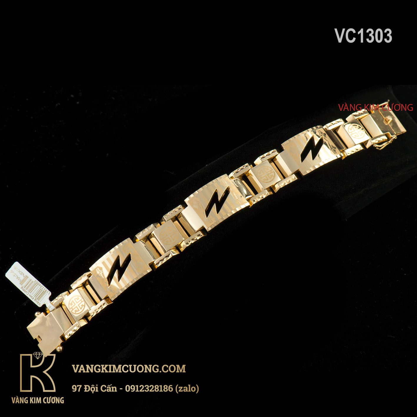 Lắc tay nam vàng cao cấp 16k công nghệ 3D mã VC1303 được sản xuất từ vàng cao cấp tiêu chuẩn quốc tế 16k ( tên thường gọi chung là vàng 18k ), đây là oại vàng trang sức cao cấp có hàng lượng vàng nguyên chất 9999 cao chiếm tới 61% kết hợp các kim loại quý khác với tỉ lệ cân đối hài hòa nhất hiện nay tạo ra loại vàng cao cấp có độ cứng, độ sáng bóng tốt nhất không bị ảnh hưởng của môi trường ngoài tác động nên sản phẩm trang sức vàng 16k thường không xi mà vẫn luôn bóng sáng ánh vàng kim đây là loại vàng hoàn hảo trong thiết kế trang sức