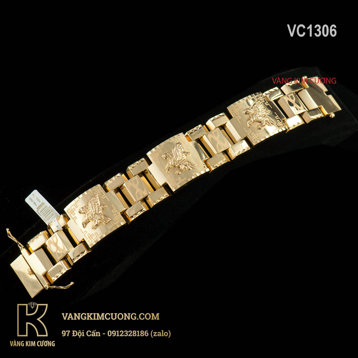 Lắc tay nam vàng cao cấp 16k công nghệ 3D mã VC1306 được sản xuất từ vàng cao cấp tiêu chuẩn quốc tế 16k ( tên thường gọi chung là vàng 18k ), đây là oại vàng trang sức cao cấp có hàng lượng vàng nguyên chất 9999 cao chiếm tới 61% kết hợp các kim loại quý khác với tỉ lệ cân đối hài hòa nhất hiện nay tạo ra loại vàng cao cấp có độ cứng, độ sáng bóng tốt nhất không bị ảnh hưởng của môi trường ngoài tác động nên sản phẩm trang sức vàng 16k thường không xi mà vẫn luôn bóng sáng ánh vàng kim đây là loại vàng hoàn hảo trong thiết kế trang sức