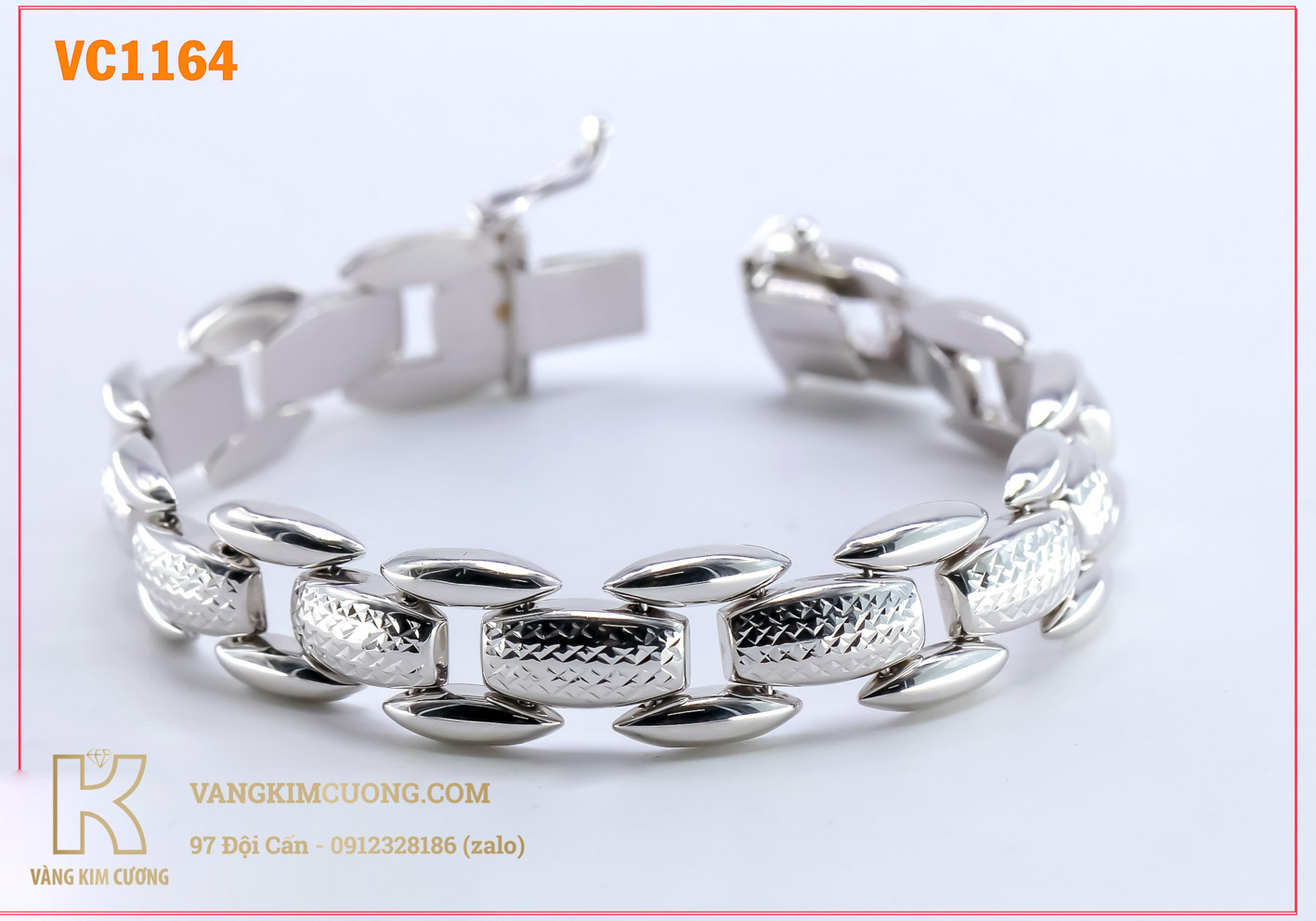 Sản phẩm lắc tay nam VY1164 là vàng trắng cao cấp 18k nhập khẩu nguyên chiếc italy hiện đại, .Lắc tay nam vàng 18k là một trong những mẫu thiết kế độc đáo và đa dạng , được kết lại với nhau bằng những mắt xích tạo thành chiếc lăc tay đầy nam tính và mạnh mẽ . những chiếc lắc cũng được tạo thêm điểm nhấn bởi những kiểu phay sáng trên bề mặt lắc càng thấy hiếc lắc trông thập hấp dẫn và đầy sức hút nam tính một cách mãnh liệt.