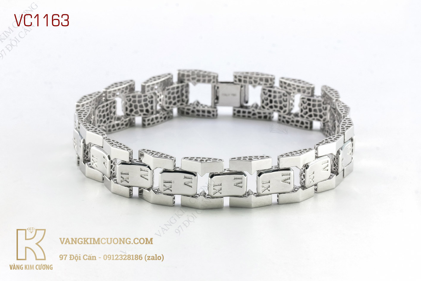 Sản phẩm lắc tay nam VC1163 là vàng trắng cao cấp 18k nhập khẩu nguyên chiếc italy hiện đại, .Lắc tay nam vàng 18k là một trong những mẫu thiết kế độc đáo và đa dạng , được kết lại với nhau bằng những mắt xích tạo thành chiếc lăc tay đầy nam tính và mạnh mẽ . những chiếc lắc cũng được tạo thêm điểm nhấn bởi những kiểu phay sáng trên bề mặt lắc càng thấy hiếc lắc trông thập hấp dẫn và đầy sức hút nam tính một cách mãnh liệt.