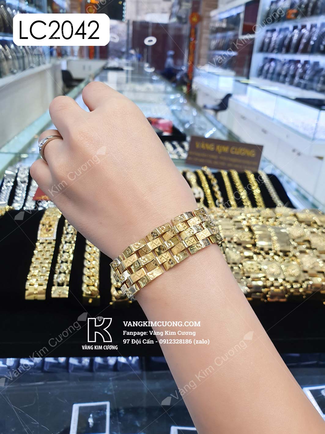 Lắc tay nam vàng cao cấp 16k công nghệ 3D mã LC2042 được sản xuất từ vàng cao cấp tiêu chuẩn quốc tế 16k ( tên thường gọi chung là vàng 18k ), đây là oại vàng trang sức cao cấp có hàng lượng vàng nguyên chất 9999 cao chiếm tới 61% kết hợp các kim loại quý khác với tỉ lệ cân đối hài hòa nhất hiện nay tạo ra loại vàng cao cấp có độ cứng, độ sáng bóng tốt nhất không bị ảnh hưởng của môi trường ngoài tác động nên sản phẩm trang sức vàng 16k thường không xi mà vẫn luôn bóng sáng ánh vàng kim đây là loại vàng hoàn hảo trong thiết kế trang sức