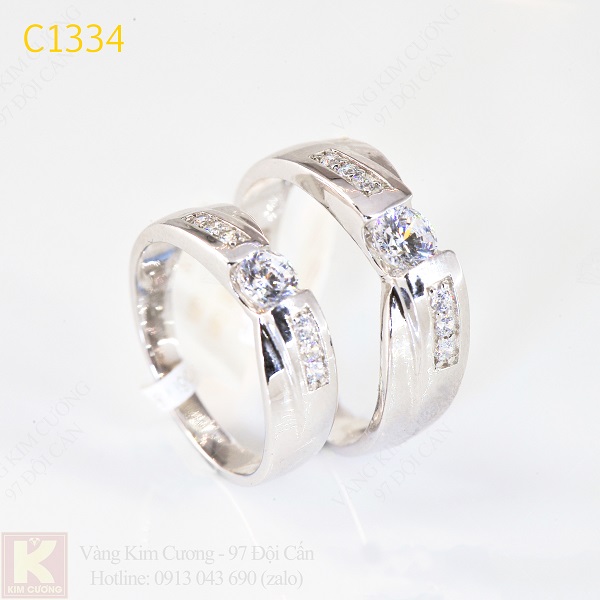 Đôi nhẫn cưới C1334 là nhẫn vàng trắng cao cấp 18k nhập khẩu nguyên chiếc Italy thiết kế hiện đại, kim cương tinh khiết thể hiện tình yêu trọn vẹn. Các bạn trẻ sẽ ngập tràn hạnh phúc trong ngày đặc biệt. Cặp n...