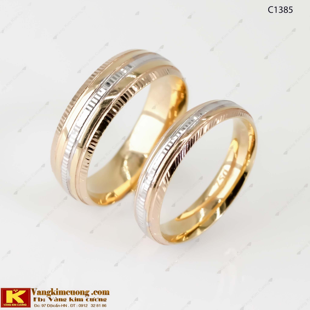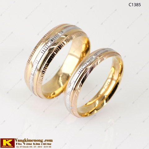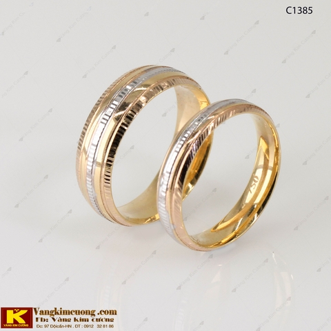 Đôi nhẫn cưới C1385 là nhẫn vàng cao cấp 18k nhập khẩu nguyên chiếc Italy thiết kế hiện đại trẻ trung.