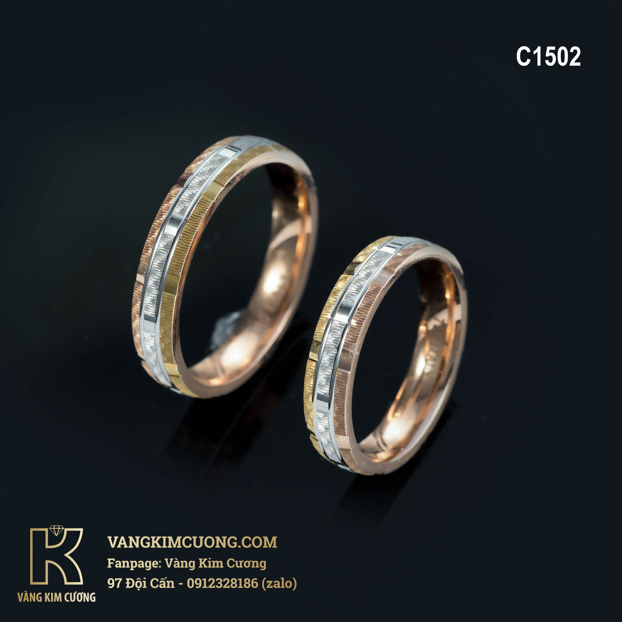 Đôi nhẫn cưới C1502 là vàng cao cấp 18k nhập khẩu nguyên chiếc Italy thiết kế hiện đại trẻ trung sang trọng.
