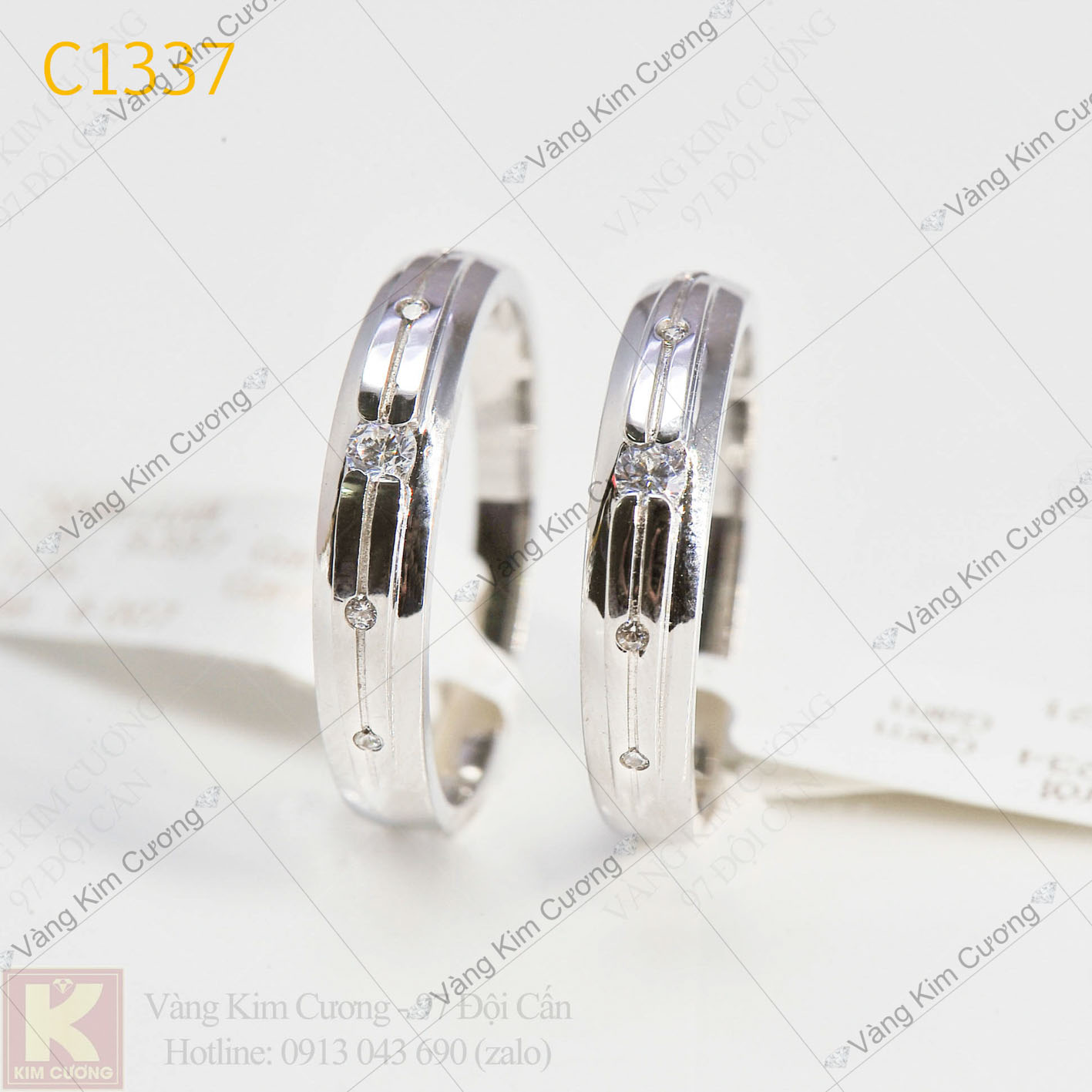 Nhẫn cưới vàng trắng cao cấp 18k mã C1337 là mẫu nhẫn lịch thiệp , nhẹ nhàng và tao nhã, kiểu dáng rất thanh tao , bởi cách điểm xuyết chi tiết và phối màu làm tôn lên được độ mềm mại và độ sáng bóng của chiếc nhẫn thêm phần đẹp hơn, mỗi một thiết kế là một trong những tâm huyết của các nghệ nhân có tên tuổi trong ngành chế tác trong nước và trên thế giới , họ đã cống hiến và đem hết những giá trị tinh hoa nhất để thể hiện lên tác phẩm của mình một cách chuẩn xác nhất.
