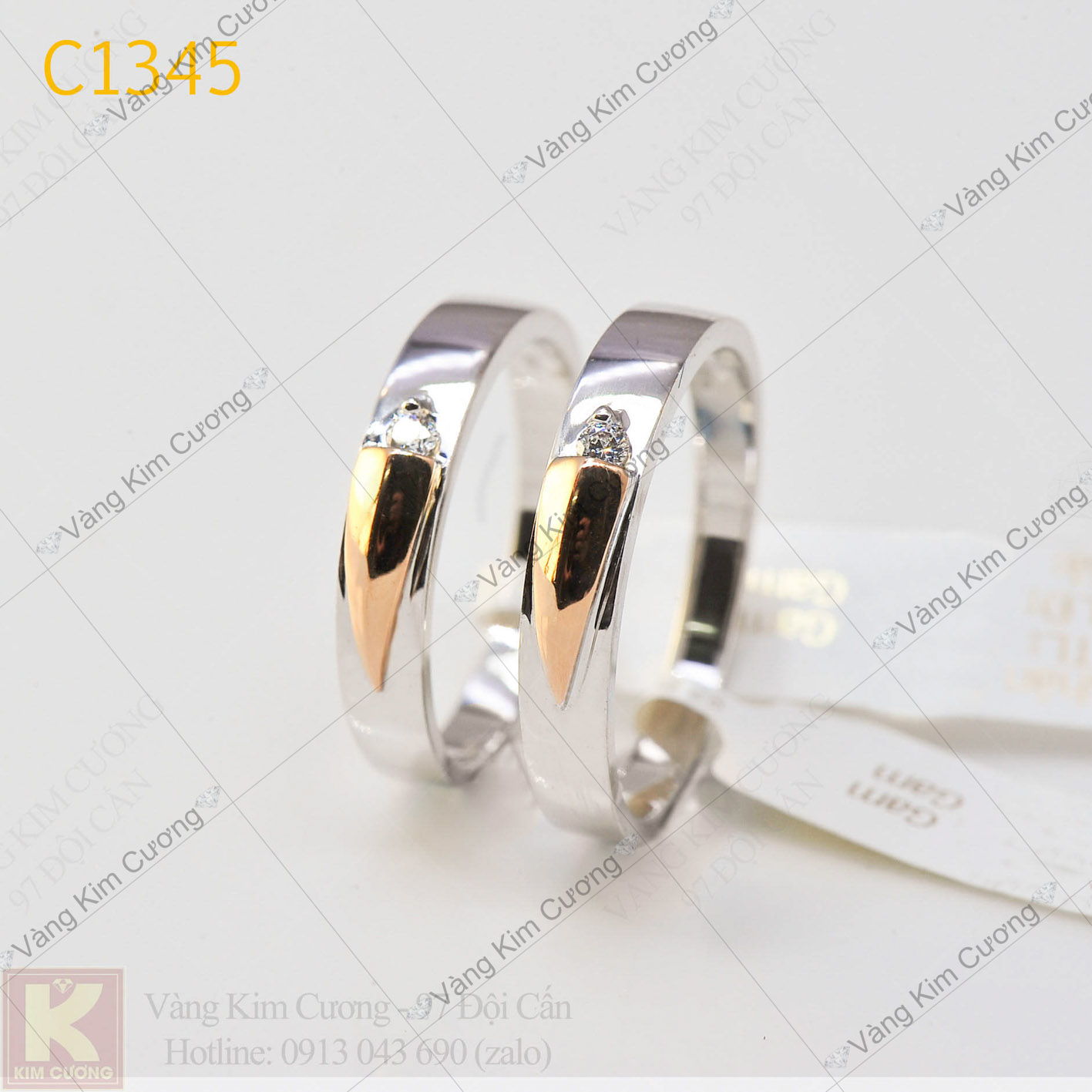 Nhẫn cưới vàng trắng cao cấp 18k mã C1345 là mẫu nhẫn lịch thiệp , nhẹ nhàng và tao nhã, kiểu dáng rất thanh tao , bởi cách điểm xuyết chi tiết và phối màu làm tôn lên được độ mềm mại và độ sáng bóng của chiếc nhẫn thêm phần đẹp hơn, mỗi một thiết kế là một trong những tâm huyết của các nghệ nhân có tên tuổi trong ngành chế tác trong nước và trên thế giới , họ đã cống hiến và đem hết những giá trị tinh hoa nhất để thể hiện lên tác phẩm của mình một cách chuẩn xác nhất.