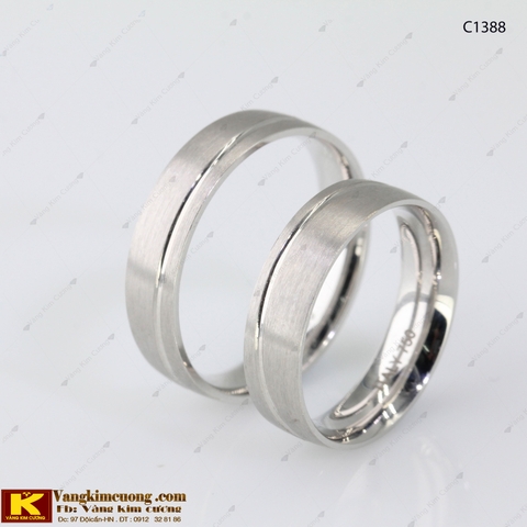 Đôi nhẫn cưới C1388 là nhẫn vàng trắng cao cấp 18k nhập khẩu nguyên chiếc Italy thiết kế hiện đại trẻ trung.