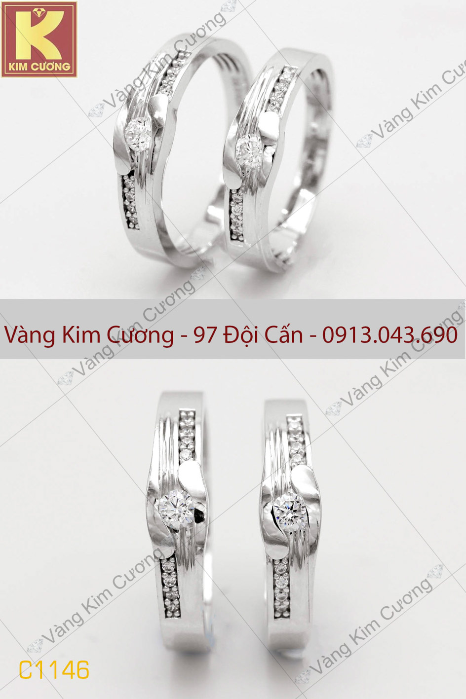 Nhẫn cưới vàng trắng mã C1146