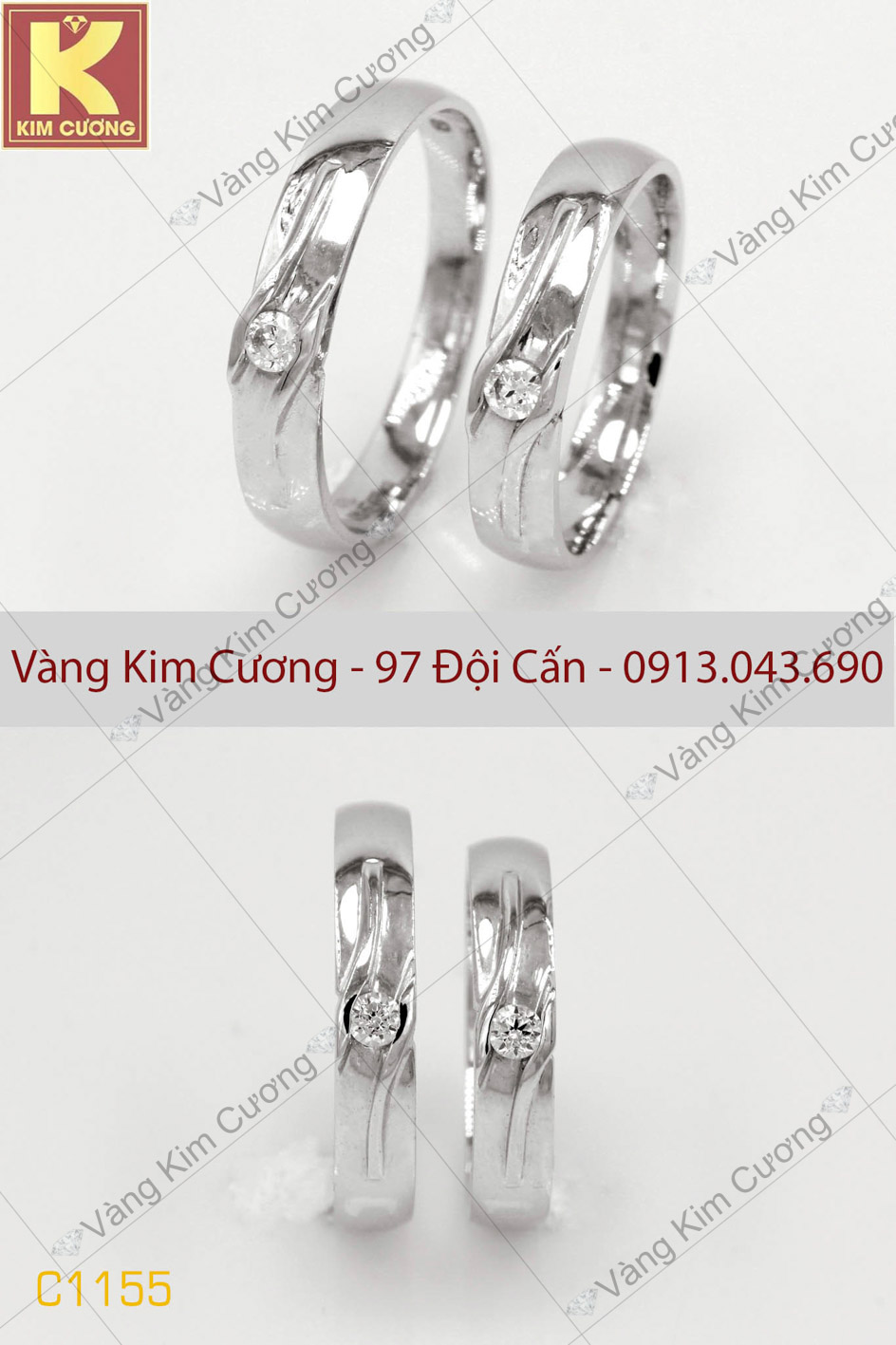 Nhẫn cưới vàng trắng mã C1155