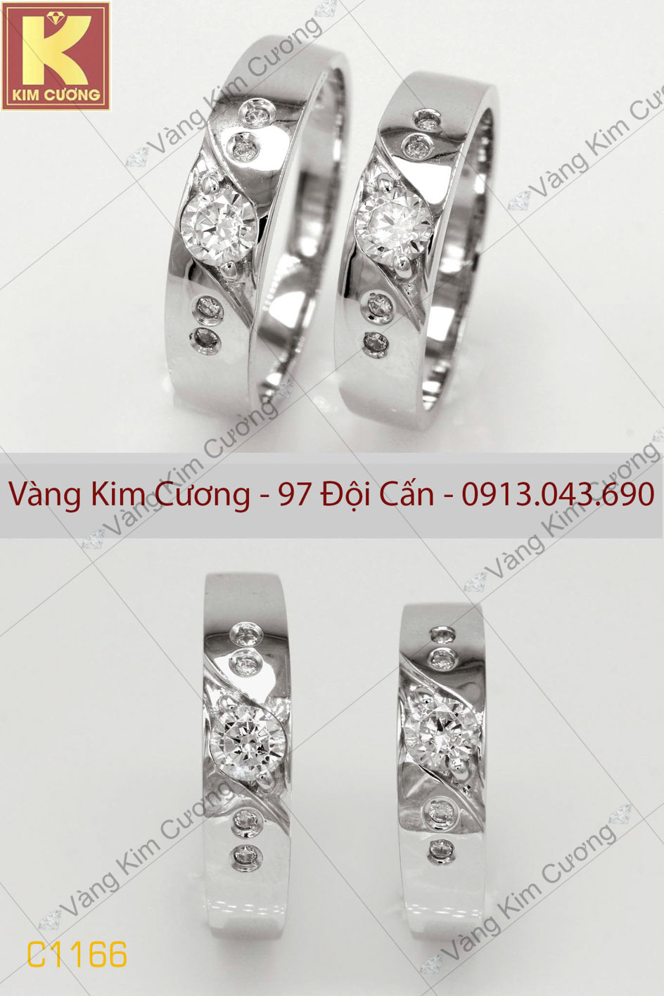 Nhẫn cưới vàng trắng mã C1166
