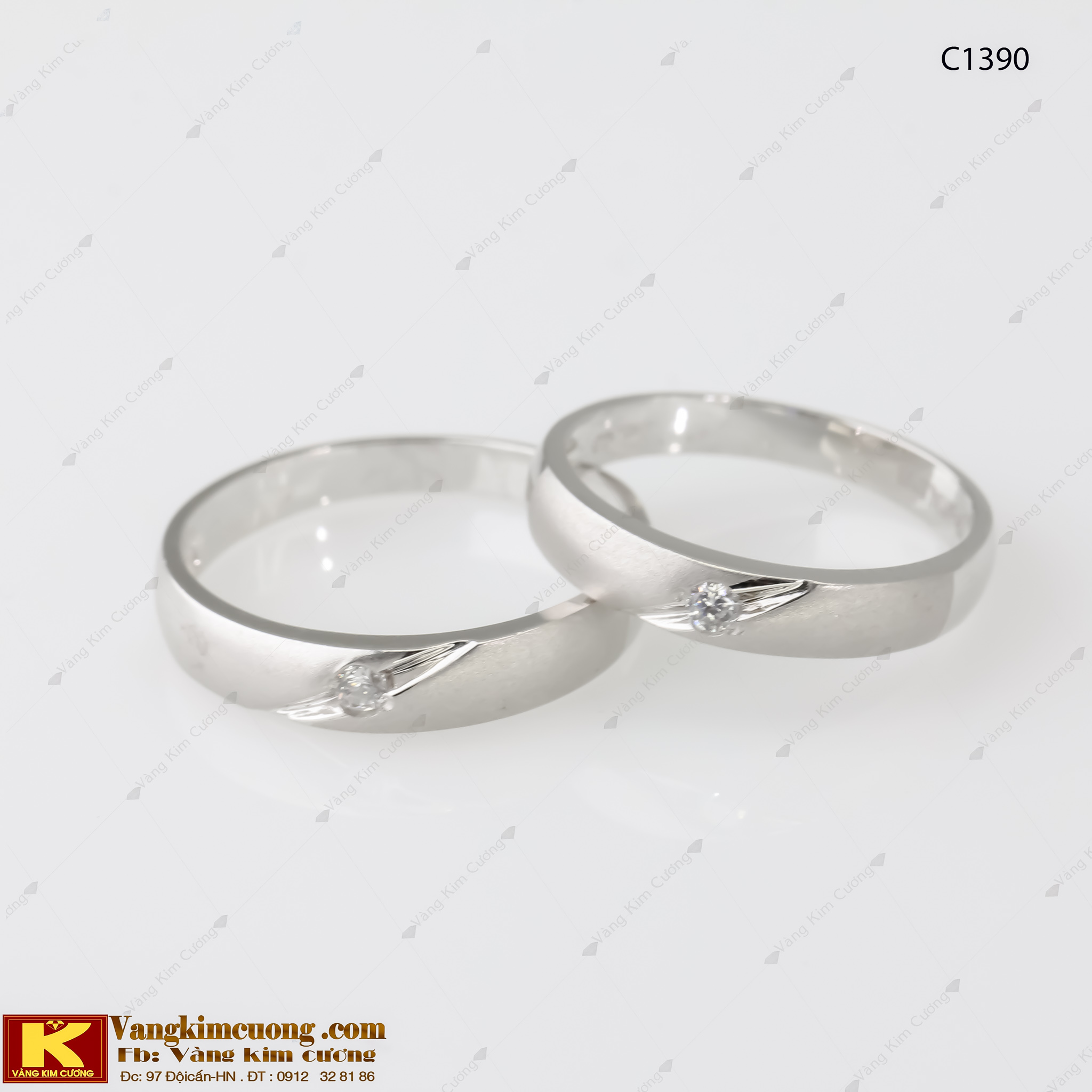 Nhẫn cưới vàng trắng mã C1390