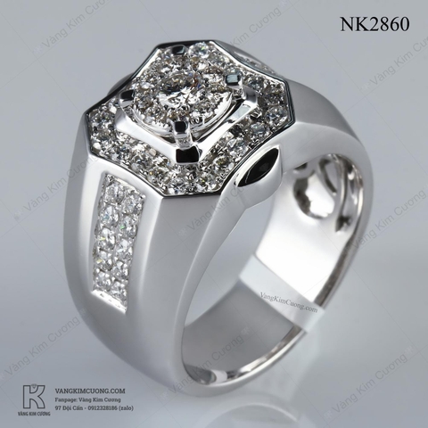 Nhẫn Nam ổ kim cương thiên nhiên NK2860 nhập khẩu italy nguyên chiếc