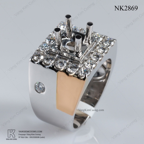 Nhẫn Nam ổ kim cương thiên nhiên NK2869 nhập khẩu italy nguyên chiếc