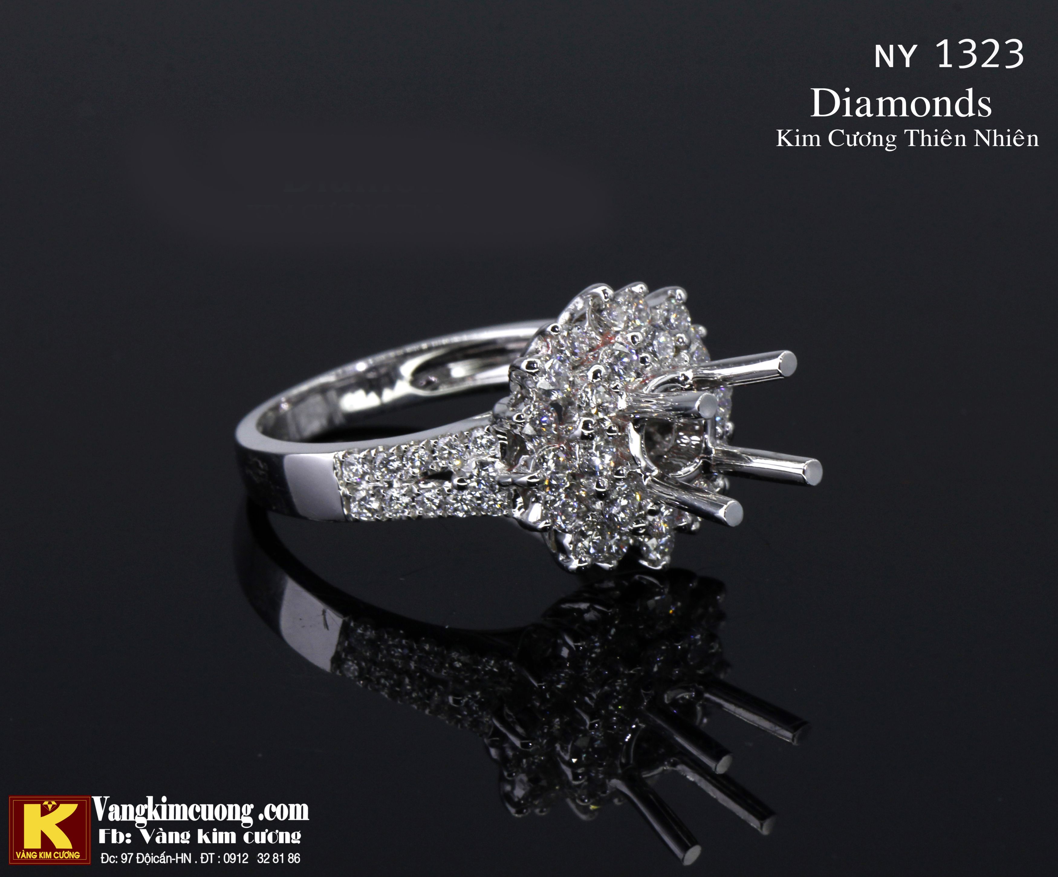 Nhẫn NY1323 là nhẫn ổ kim cương thiên nhiên , vàng trắng cao cấp 18k nhập khẩu nguyên chiếc, đá kim cương thiên nhiên .