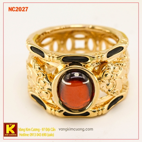 Sản phẩm nhẫn nam đá quý Garnet phong thủy NC2027 là tỳ hưu chiêu tài tích lộc là vàng cao cấp 16k, công nghệ 3D hiện đại đem đến sự thành c...