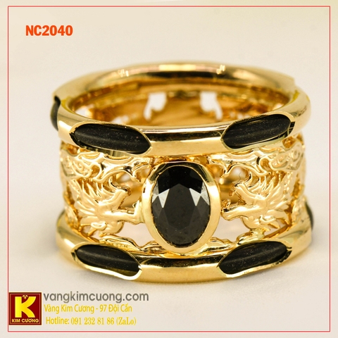Mẫu nhẫn nam đá quý phong thủy NC2040: Song long chầu nguyệt, vàng cao cấp 16k, đá Sapphire Thụy Sĩ mang đến sự hạnh phúc, tài lộc cho ...