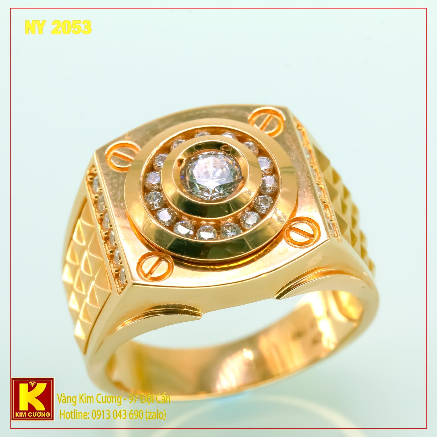 Nhẫn nam cao cấp vàng ổ kim cương nhân tạo 18k, mã số NY2053 nhập khẩu nguyên chiếc Italy, được sản xuất trên công nghệ dây truyền hiện đại nhất thế giới , với những đường thiết kế tinh sảo sắc nét đến từng chi tiết , kiểu dáng hiện đại phá cách mang phong cách châu âu đẳng cấp , mỗi chi tiết là sự sáng tạo và cả tâm huyết của những nhà thiết kế đem hết cả ý nguyện cả ước mơ lẫn hoài bão của mình để đem đến cho những khách hàng yêu quý của mình những kiệt tác đẹp đến mê hồn