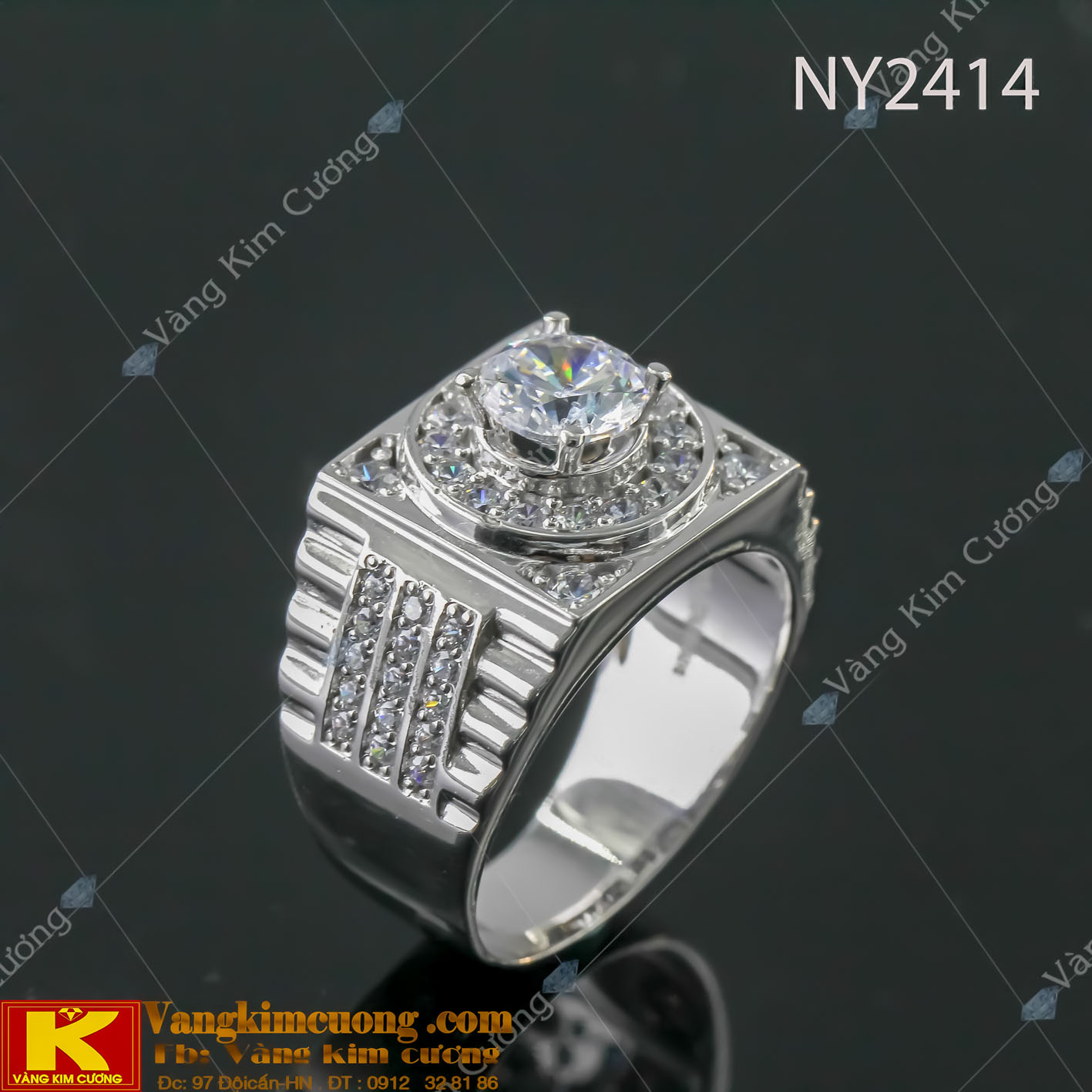 Nhẫn nam cao cấp vàng ổ kim cương nhân tạo 18k, mã số NY2414 nhập khẩu nguyên chiếc Italy, được sản xuất trên công nghệ dây truyền hiện đại nhất thế giới , với những đường thiết kế tinh sảo sắc nét đến từng chi tiết , kiểu dáng hiện đại phá cách mang phong...