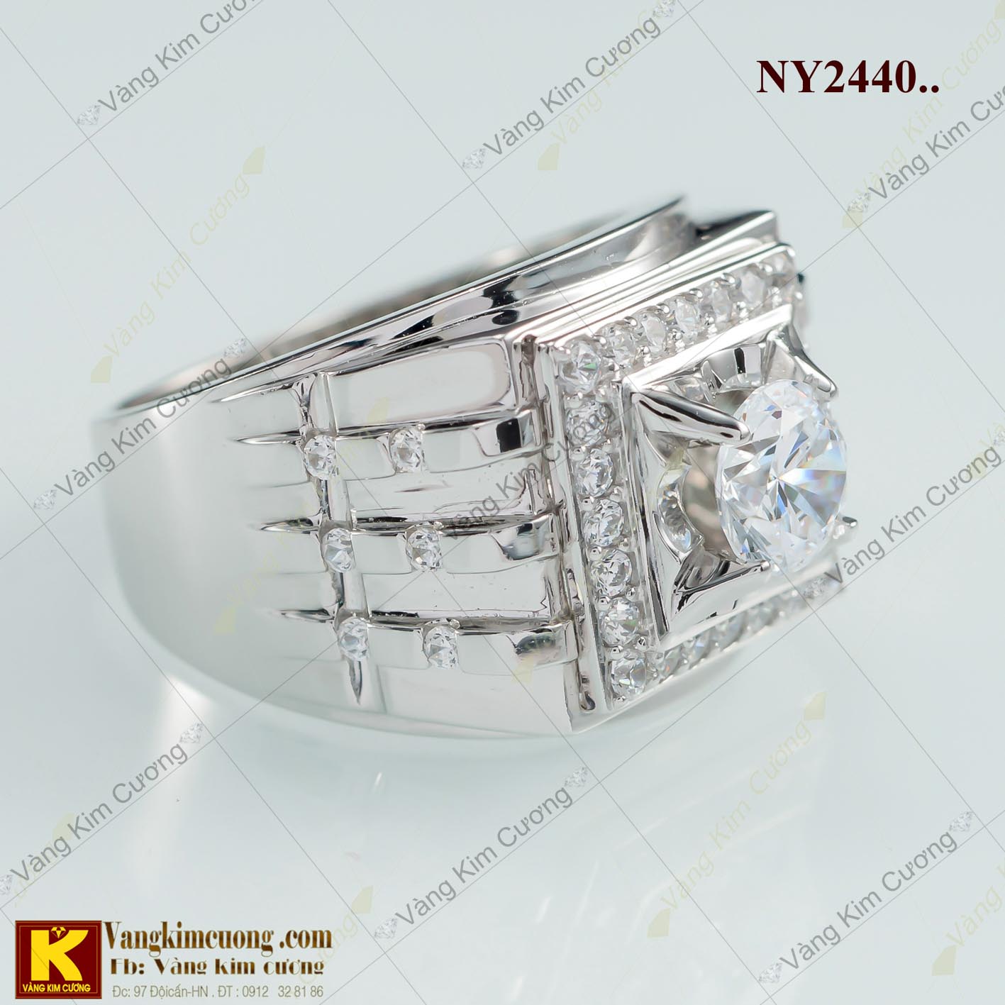 Nhẫn nam cao cấp vàng ổ kim cương nhân tạo 18k, mã số NY2440 nhập khẩu nguyên chiếc Italy, được sản xuất trên công nghệ dây truyền hiện đại nhất thế giới , với những đường thiết kế tinh sảo sắc nét đến từng chi tiết , kiểu dáng hiện đại phá cách mang ...
