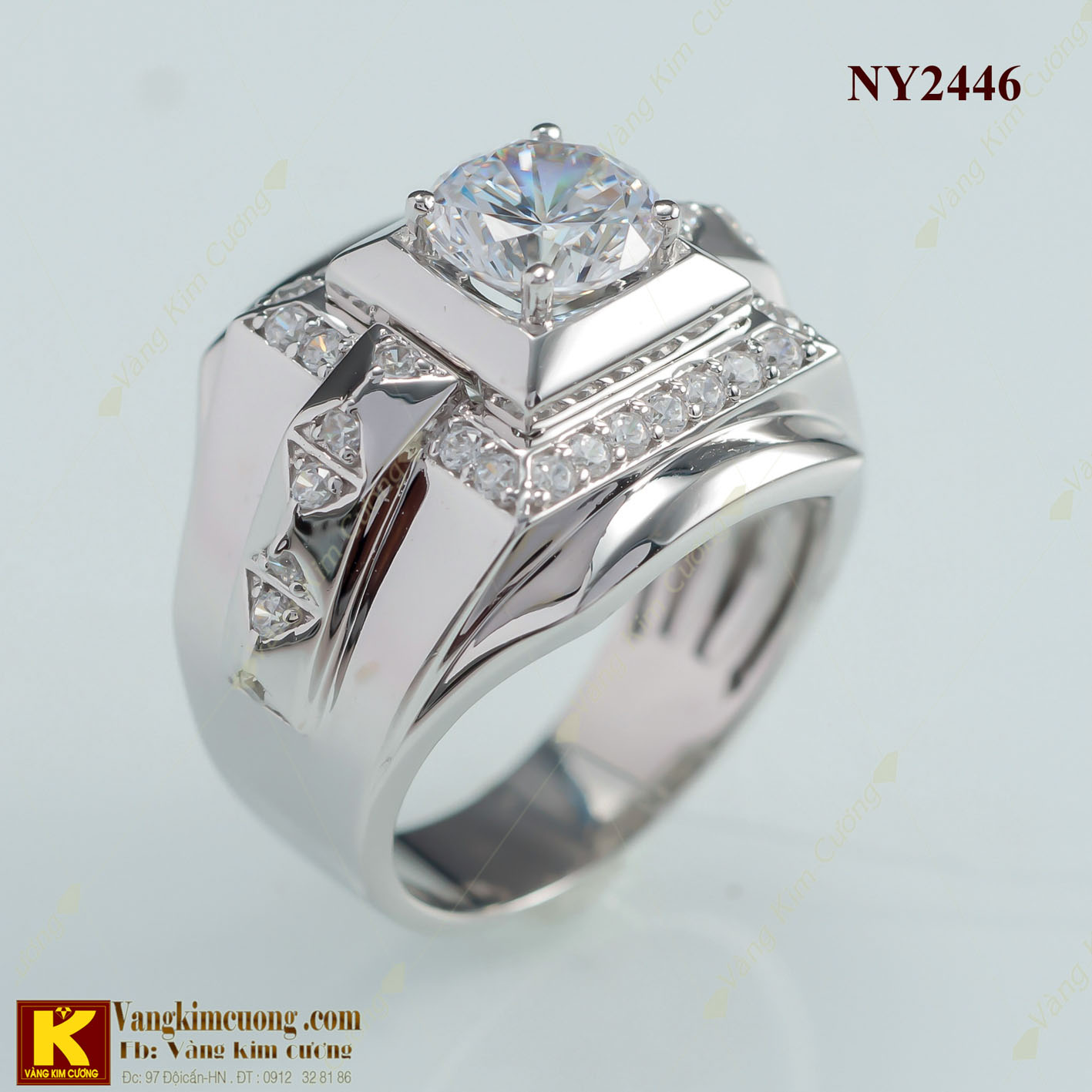 Nhẫn nam cao cấp vàng ổ kim cương nhân tạo 18k, mã số NY2446 nhập khẩu nguyên chiếc Italy, được sản xuất trên công nghệ dây truyền hiện đại nhất thế giới , với những đường thiết kế tinh sảo sắc nét đến từng chi tiết , kiểu dáng hiện đại phá cách mang ...