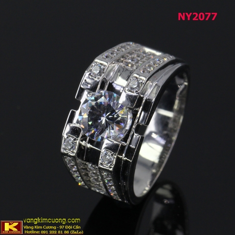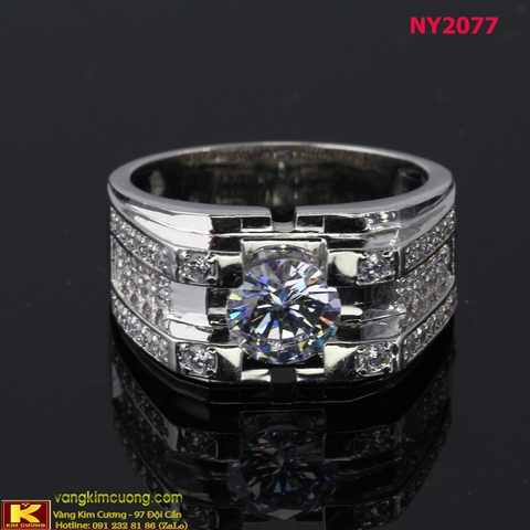 Mẫu nhẫn nam ổ kim cương nhân tạo NY2077 là vàng trắng cao cấp 18k nhập khẩu Italy độc đáo thể hiện sự lịch lãm cho nam giới. Đeo nhẫn vàng trắng...