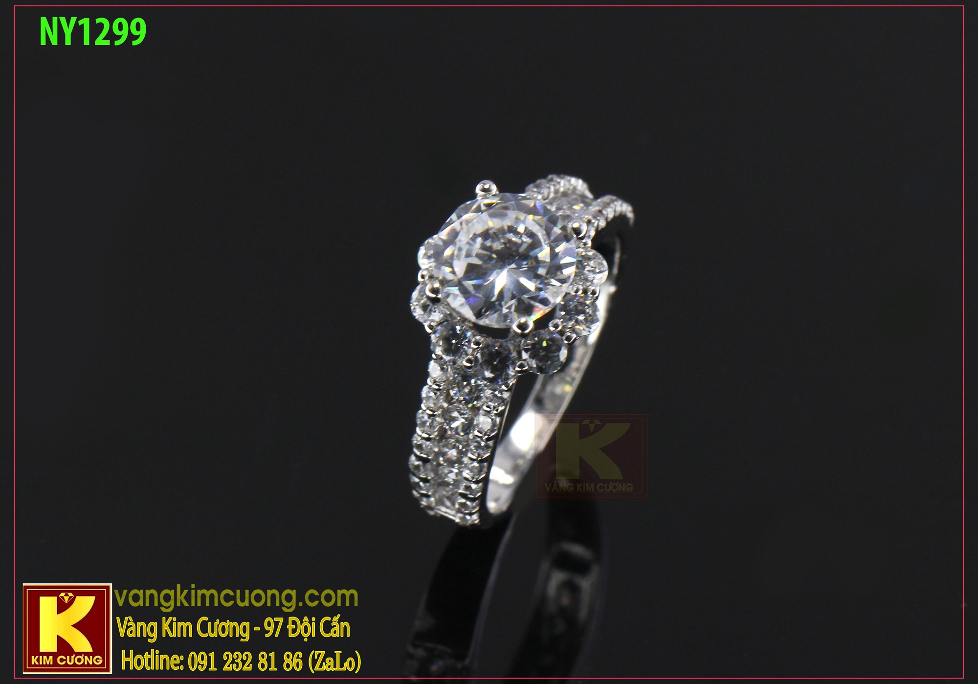 Nhẫn NY1299 là nhẫn vàng trắng cao cấp 18k nhập khẩu nguyên chiếc Italy, đá kim cương nhân tạo có giá 4,76 triệu.