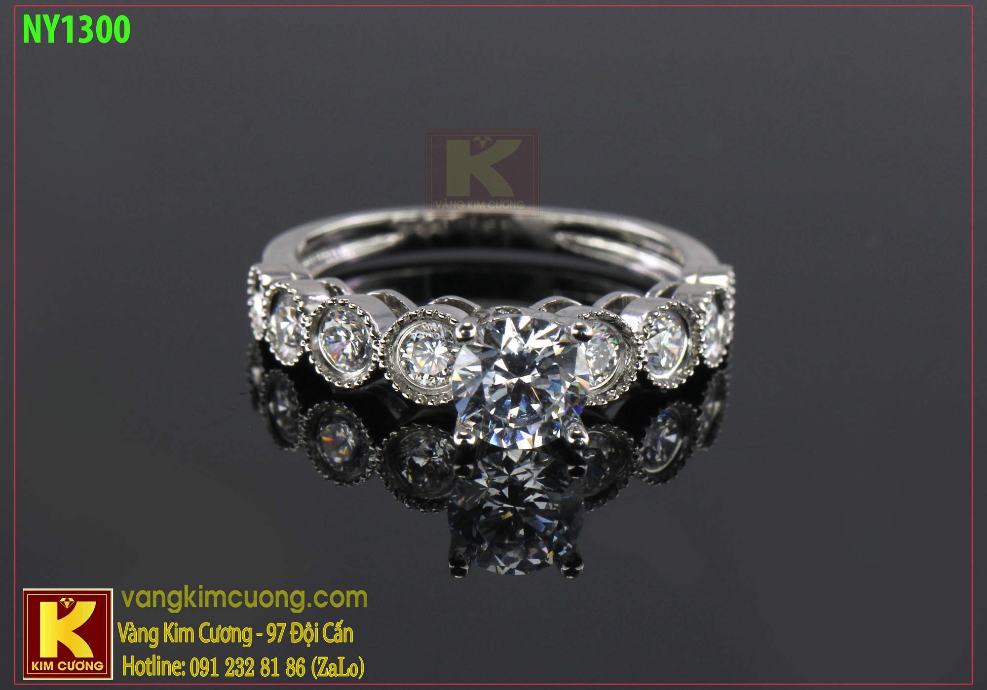 Nhẫn NY1300 là nhẫn vàng trắng cao cấp 18k nhập khẩu nguyên chiếc Italy, đá kim cương nhân tạo có giá 4,74 triệu.