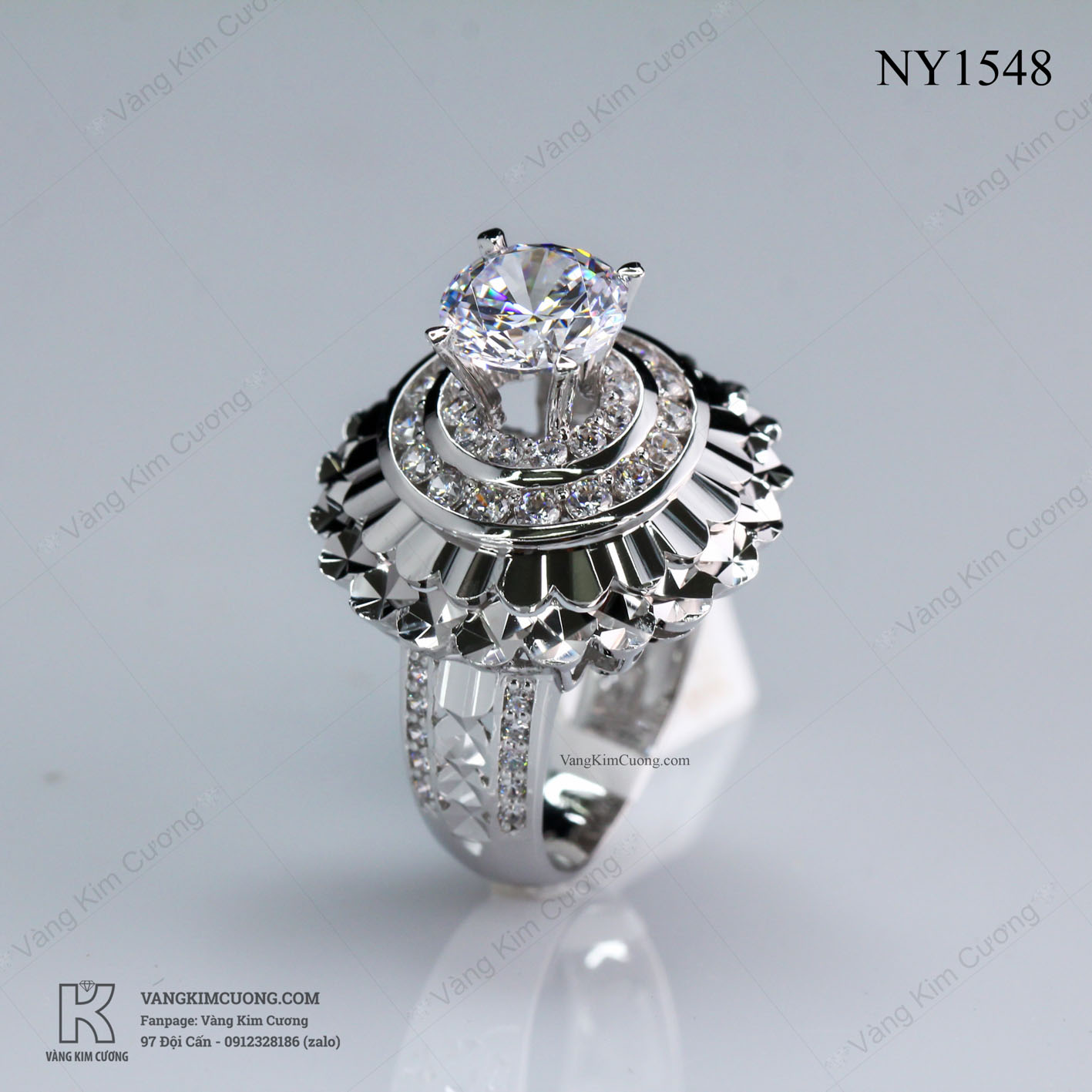 Nhẫn nữ vàng trắng cao cấp 18k nhập khẩu nguyên chiếc Italy, ổ kim cương nhân tạo NY1548