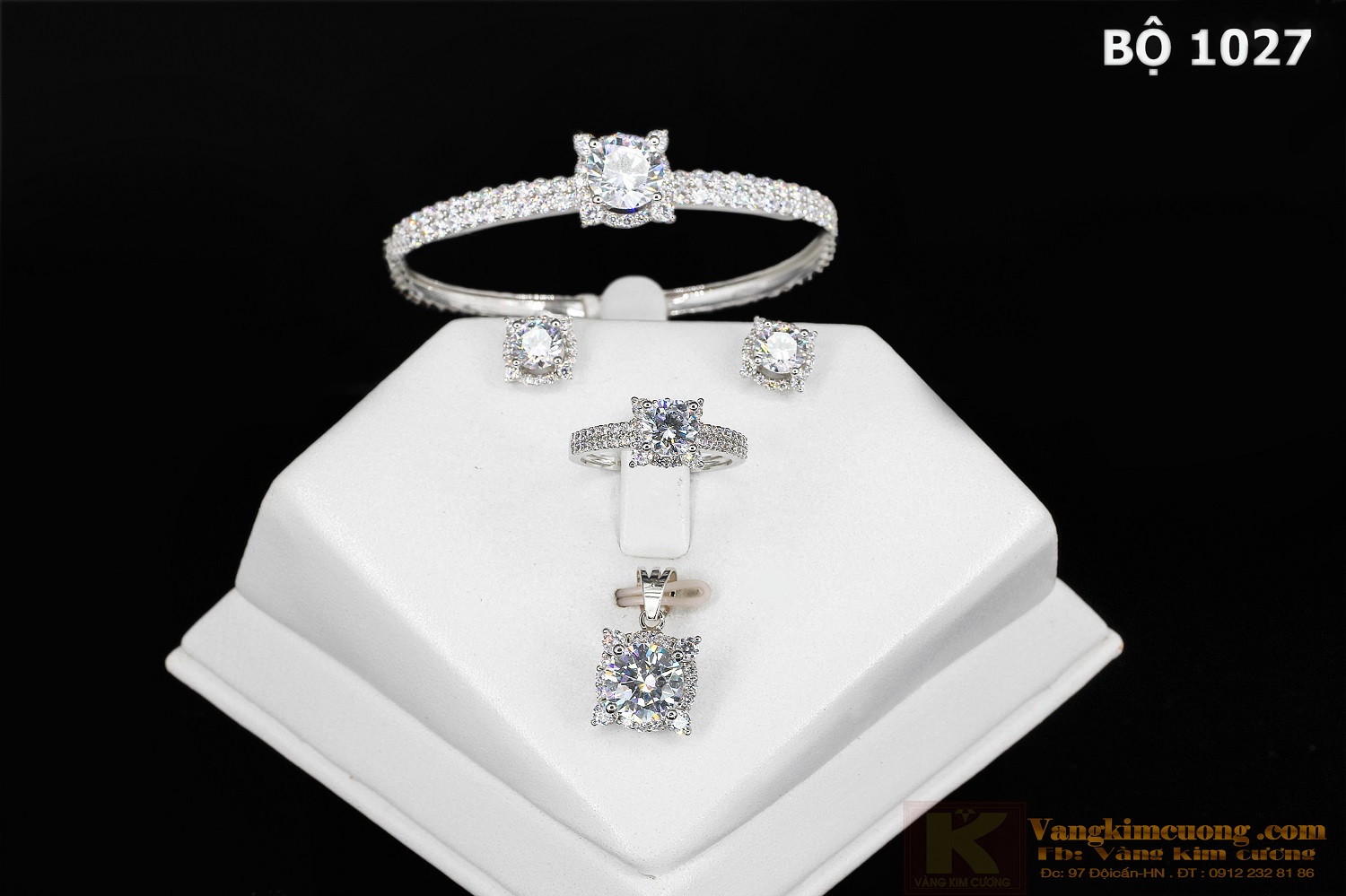 Bộ BO1027 là vàng trắng cao cấp 18k, mặt kim cương nhân tạo, hàng nhập khẩu nguyên chiếc ITALY, Được sản xuất trên công nghệ dây truyền hiện đại bậc nhất . Màu sắc tinh tế nhã nhặn , phù...
