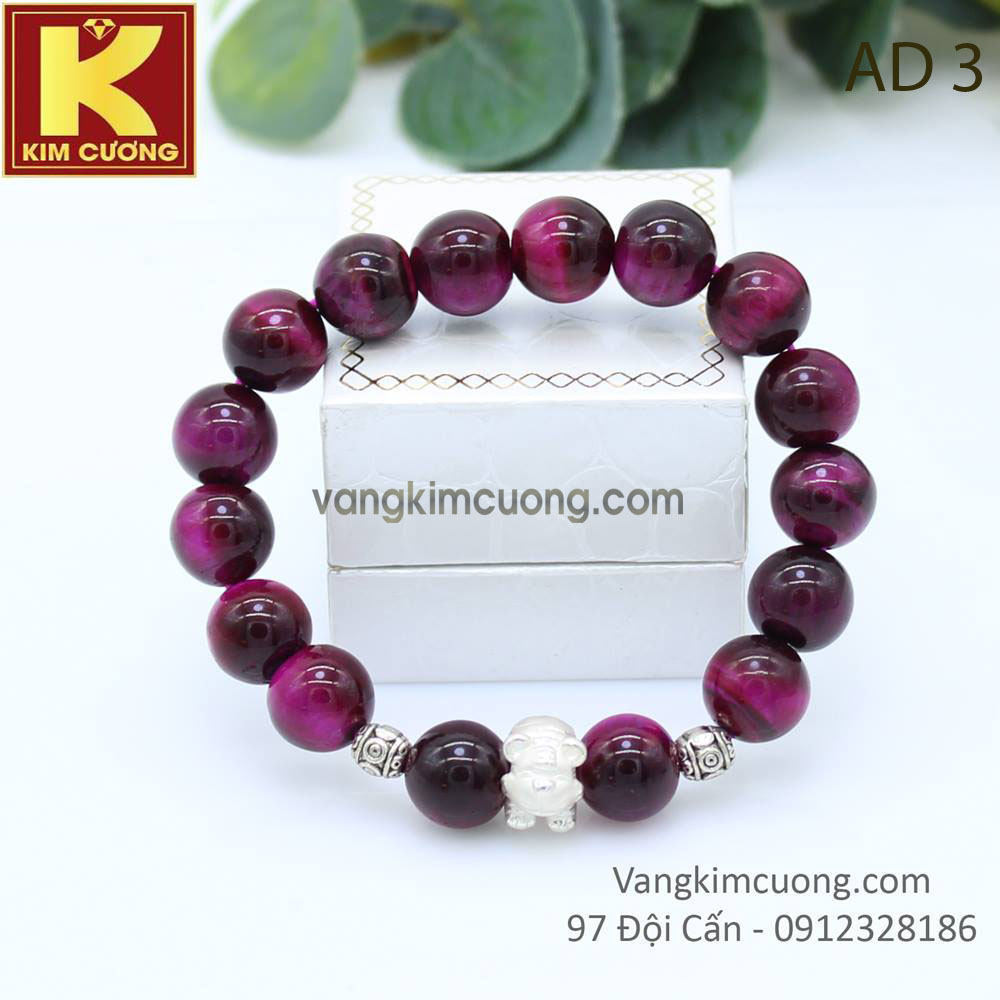 VÒNG TAY ĐÁ MẮT HỔ HỒNG 10 li mix Charm bạc nguyên chất 100%.
