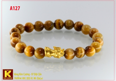 Mẫu A127 là Charm vàng 24k hưu tài lộc kết hợp với vòng đá quý mắt hổ thiên nhiên phong thủy hợp mệnh mang lại may mắn, tài lộc, sức khỏe cho chủ nhân sở hữu.