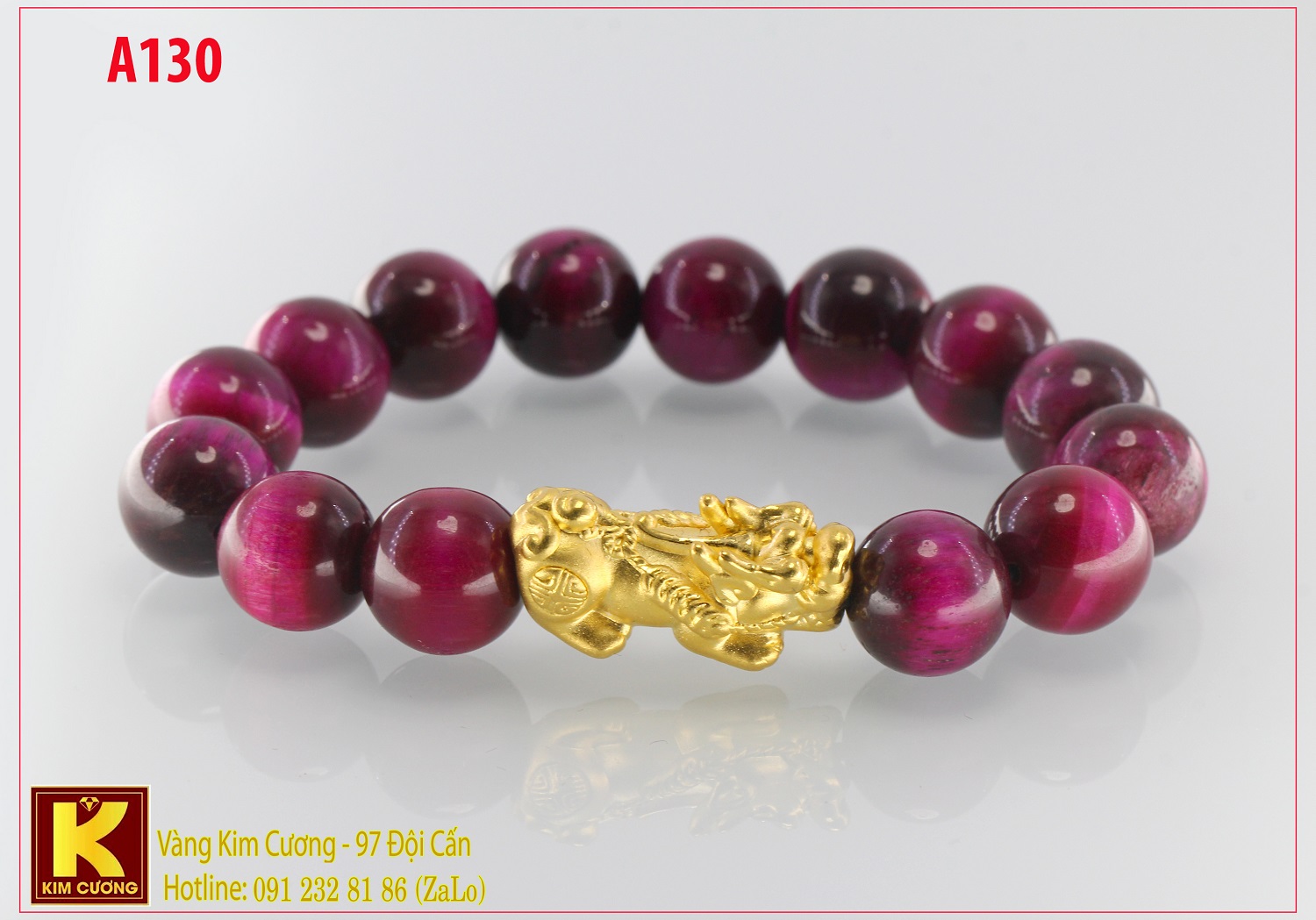 Mẫu A130 là Charm tì hưu chiêu tài tích lộc cỡ đại vàng 24k, kết hợp với vòng đá quý mắt hổ thiên nhiên phong thủy hợp mệnh mang lại may mắn, tài lộc, sức khỏe cho chủ nhân sở hữu.