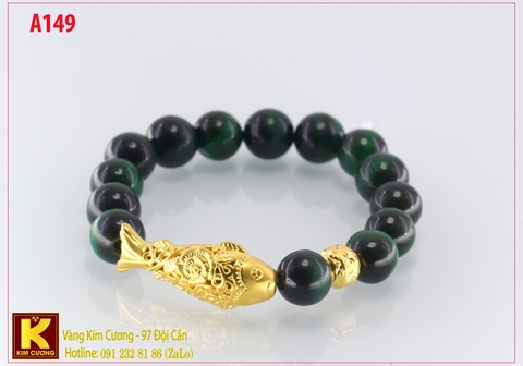 Vòng tay charm Hoa Long 24k mã A149 cỡ đại cầu tài lộc, đỗ đạt, thông minh khai trí thành công vàng 24k, charm cầu may mắn kết hợp với vòng đá quý mắt hổ màu xanh lục thiên nhiên phong thủy hợp mệnh mang lại may mắn, tài lộc, sức khỏe cho chủ nhân sở hữu.