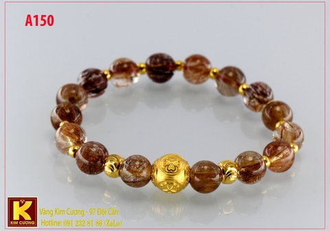 Vòng tay charm cầu tài lộc 24k mã A150, 16 charm bi vàng 24k kết hợp với vòng thạch anh tóc nâu đỏ thiên nhiên phong thủy hợp mệnh mang lại may mắn, tài lộc, sức khỏe cho chủ nhân sở hữu.