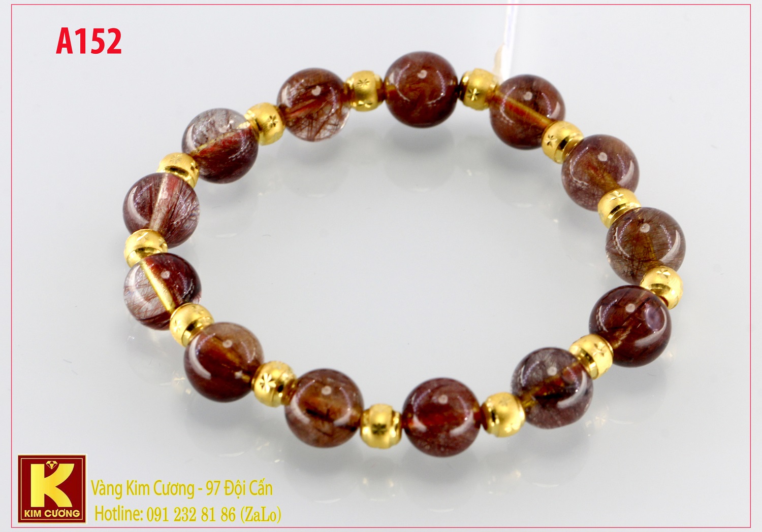 Mẫu A152 là 13 Charm bi vàng cỡ lớn ta 24k kết hợp với vòng thạch anh tóc nâu đỏ thiên nhiên phong thủy hợp mệnh mang lại may mắn, tài lộc, sức khỏe cho chủ nhân sở hữu.