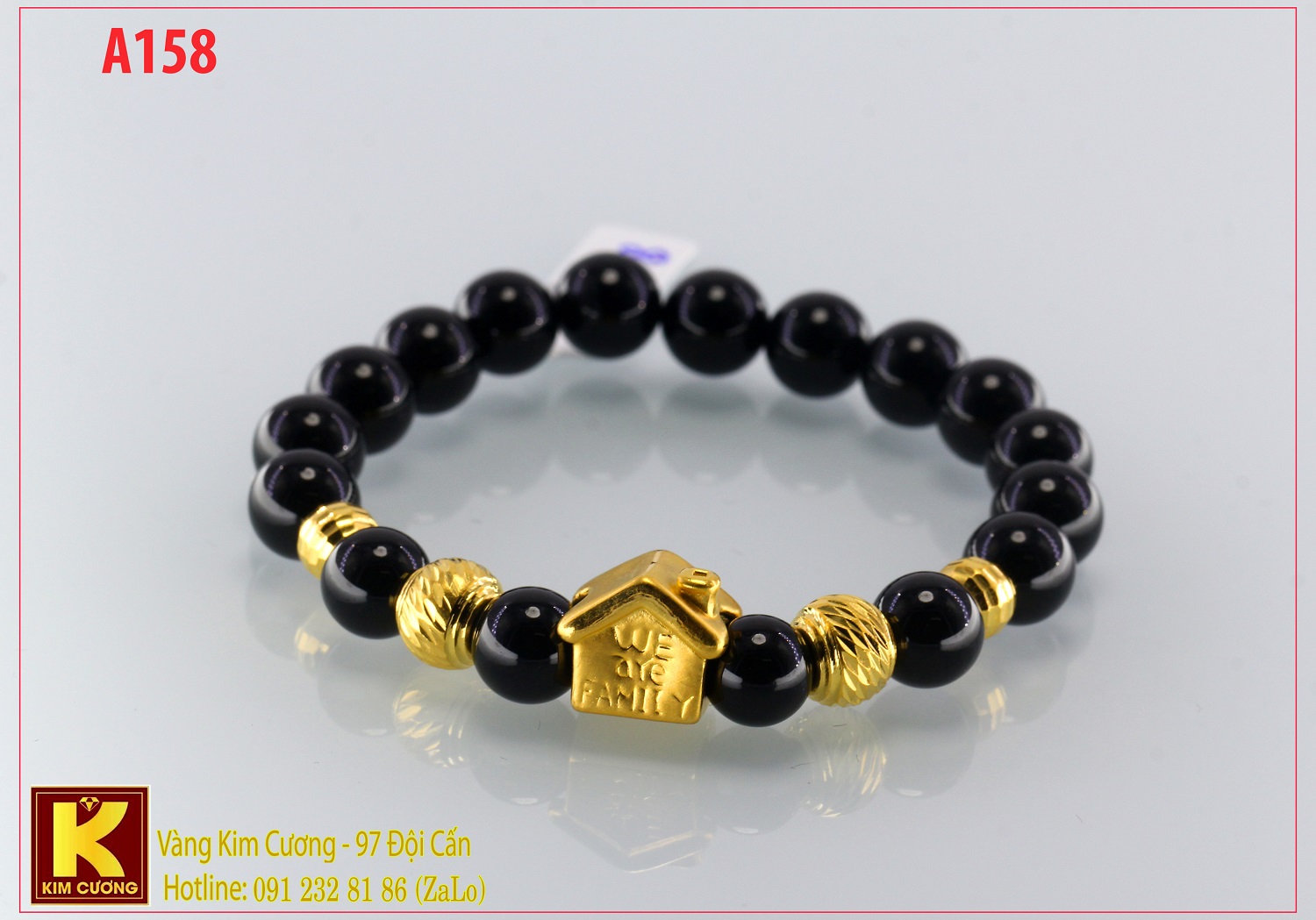 Vòng tay charm ngôi nhà hạnh phúc24k A158, 4 charm cầu may mắn bình an kết hợp với vòng thạch anh đen phong thủy hợp mệnh mang lại may mắn, tài lộc, sức khỏe cho chủ nhân sở hữu.