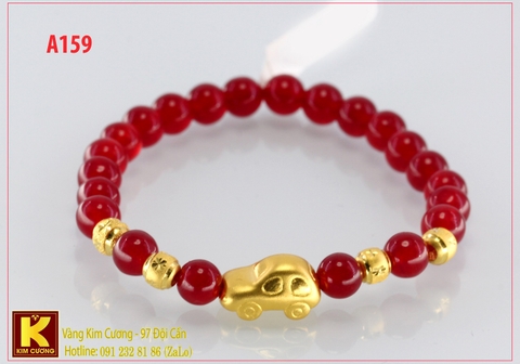 Mẫu A159 gồm Charm xế vàng, thượng lộ bình an, 4 charm cầu may mắn vàng ta 24k kết hợp với vòng đá mã lão thiên nhiên phong thủy hợp mệnh mang lại may mắn, tài lộc, sức khỏe cho chủ nhân sở hữu.