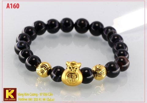 Vòng tay charm túi vàng 24k mã A160 thần tài hút lộc, 2 charm cầu may mắn vàng ta 24k kết hợp với vòng đá thạch anh thiên nhiên đen phong thủy hợp mệnh mang lại may mắn, tài lộc, sức khỏe cho chủ nhân sở hữu.